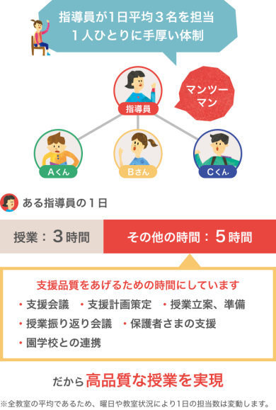 パーソナルコースではそのノウハウを活かし、「教室での授業」と「家庭学習」の両面からお子さまに短期集中でアプローチ。発達支援の観点からお子さまにいま必要なサポートをおこないます。